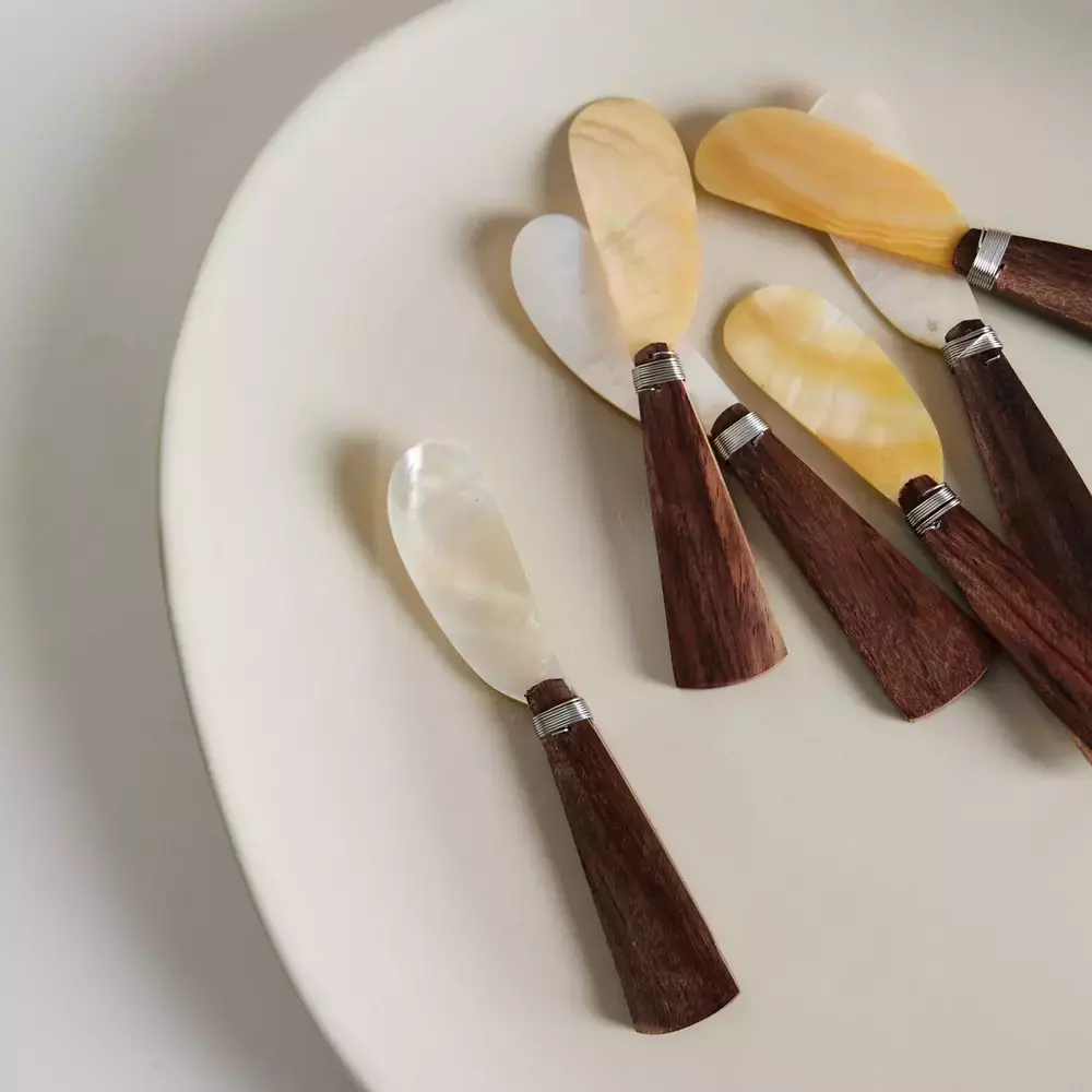 Untador de nácar y mango de madera 12 cm: la combinación perfecta entre elegancia y funcionalidad para tu cocina. Su diseño con nácar auténtico aporta un toque sofisticado, mientras que el mango de madera garantiza un agarre cómodo y seguro. Ideal para untar quesos, mantecas y patés con estilo.